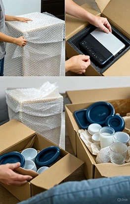 Glassware, ceramic sets, and fragile utensils are individually wrapped and cushioned for maximum safety.